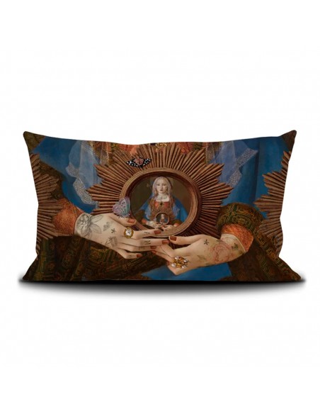 Trendy cushion covers! Sometimes rock, dreamlike, baroque, sometimes romantic and poetic, but always colorful and powerful. The designer successfully blends originality, spirituality and creativity. With their boundless imagination, they revisit old paintings, combining the value of the past with contemporary graphic art. The incomparably soft polyester velvet sublimates the motifs and gives these masterpieces a stunning result. The 40x65 cm rectangular cushion covers, also known as cushion wedges, will fit perfectly into your interior, adding a unique touch to your decor.