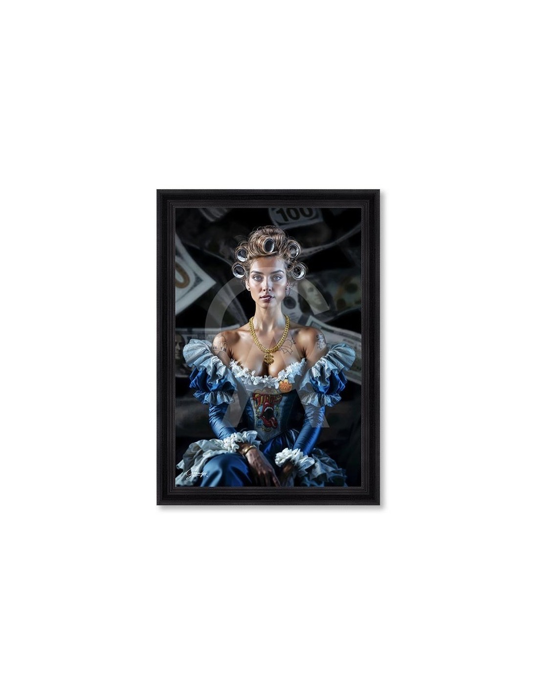 Ces tirages numériques, imprimés sur un support de haute qualité, sont sublimées par un encadrement original en bois peint.